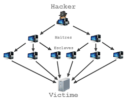 ويجدر الذكر ان هذا النوع من الهجمات يهدف الى حجب خدمة معينه من شبكة الانترنت حيث يقوم المهاجم بتوضيف خوادم مخترقة لارسال كم هائل من الطلبات في نفس الوقت , مما يؤدي الى استهلاك موارد الهدف وتوقف خدماتة , ايضا ما يميز هذا النوع من الهجوم انه لا يحتاج الى خبرة او موارد كبيرة .
